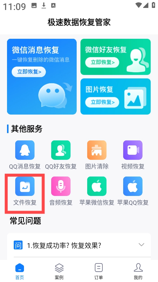 1、需要在本站安装极速数据恢复管家,打开应用。