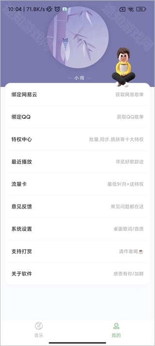3、玩家点击“我的”按钮,就能自行绑定网易云账号与QQ账号,并且还能够查看最近播放的音乐。