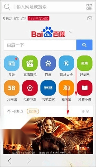 1. 开启猎豹手机浏览器,通过滑动页面寻找到【热门影视】。