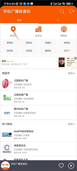 如何在华谷FM电台搜索本地台呢?方法如下: 1、进入华谷FM电台,点击本地台。