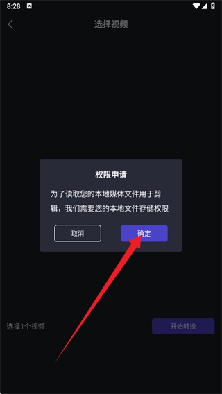 3、选择一项功能进入,参考图示。由于是首次使用该软件,软件需要获取一些手机权限,此时点击“确定&允许”即可。