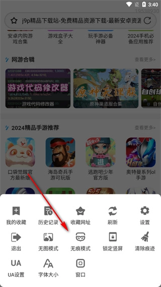 3、轻点下方菜单栏,还能够进行网址收藏、上网痕迹清除等操作。