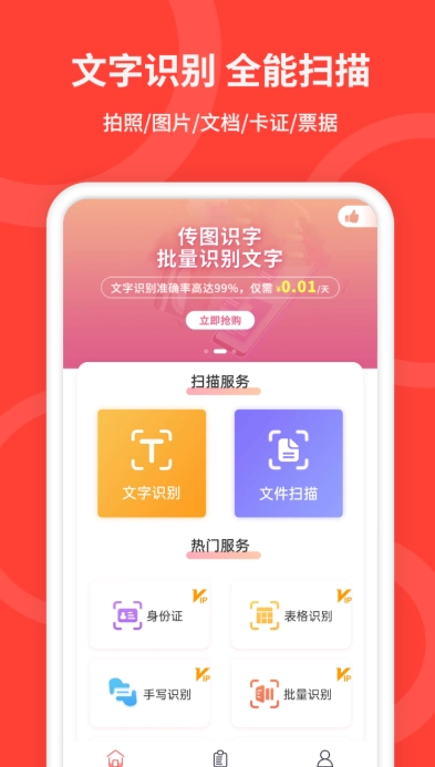 手机扫描仪是一款功能全面的扫描软件,涵盖扫描、文字识别、文字提取、扫描翻译、文档扫描、证件扫描,还具备扫描仪、扫描王的特性,同时支持传图识字、图片翻译等多种功能。
