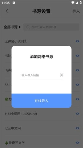 4、这里不仅拥有丰富的书源,而且支持导入外部书源,助您随心所欲地搭建个人专属书库。