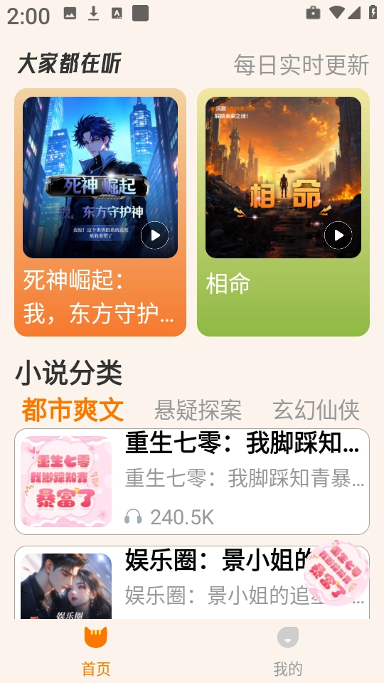 1.每日实时更新大量小说资源,为大家打造轻松的听书环境