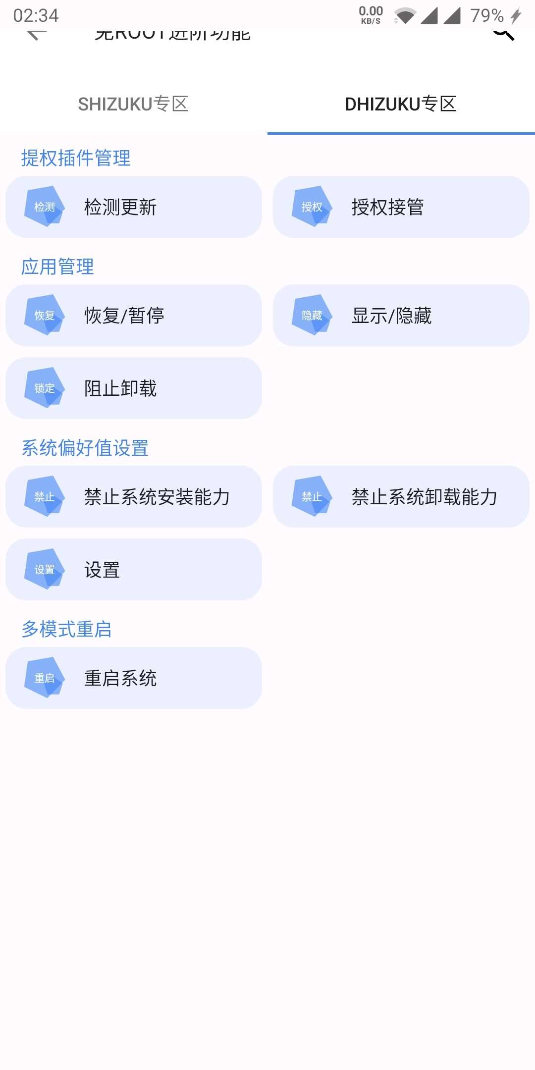 一键多模式重启:重启状态栏,桌面,系统,rec。