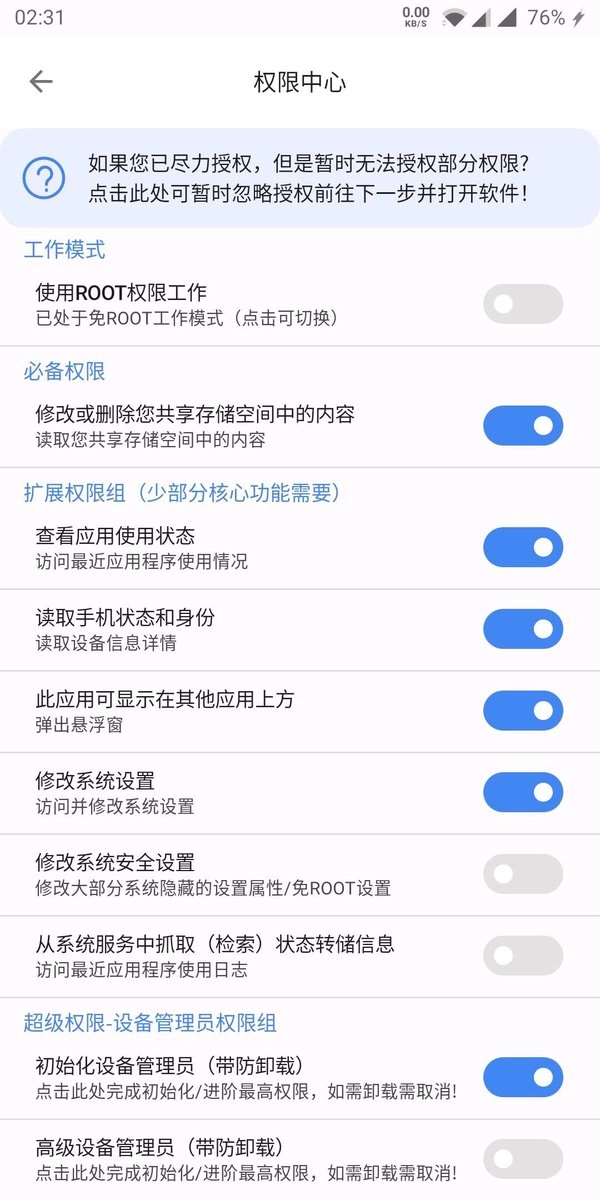 2. 不建议在冷门设备、主力设备、工作设备或存储有重要数据的设备上运行该应用。