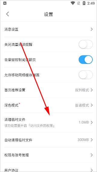 3、随后在设置页面里,于页面上寻找到“自动清理临时文件”这一选项,点击此选项便能清理临时文件。