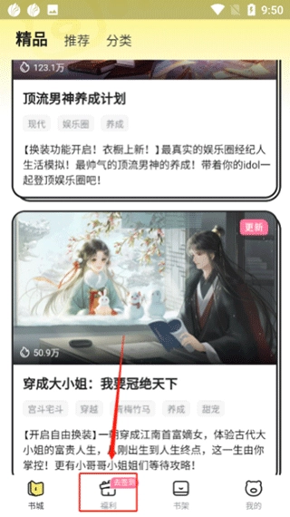 2、完成【福利】页面的对应任务,就能免费领取能量,用于游戏及小说阅读。