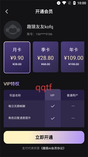 打开你的趣猿AI,在个人中心点击开通会员功能。