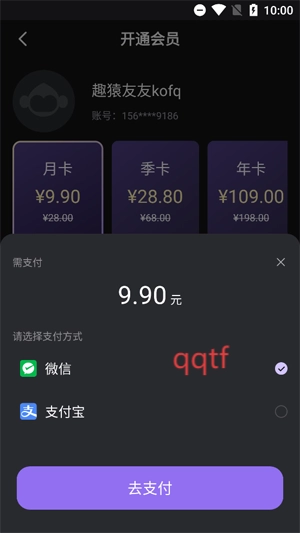 在支付界面选择支付方式,完成支付后,开通会员。