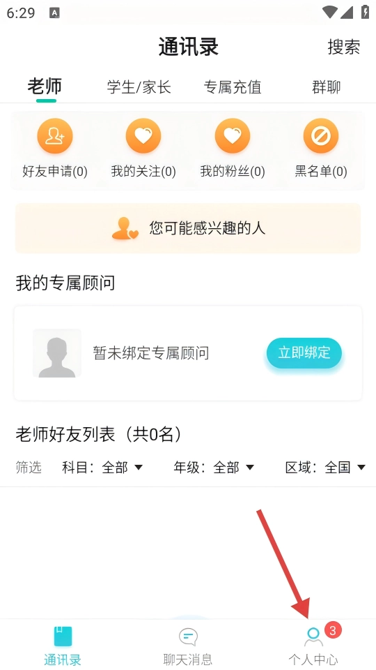 在通讯录页面点击底部的【个人中心】,即可进入账号功能管理界面。