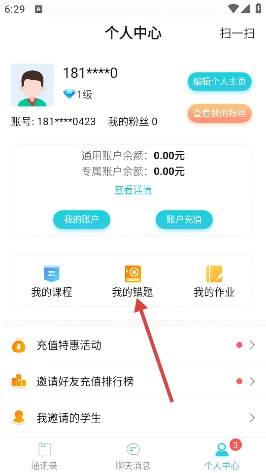 你可以在个人中心里找到【我的错题】,点击进入错题本模块,在这里就能对各学科的错题进行管理了。