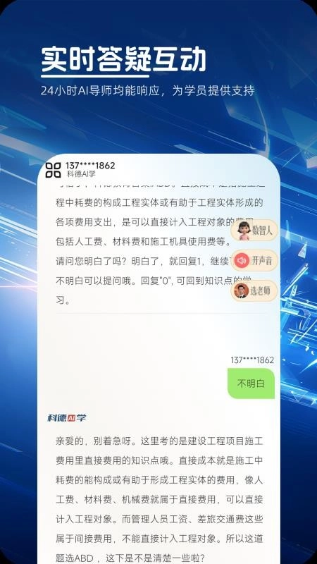 接下来就能与AI老师展开答疑交流,自在地进行对话互动。