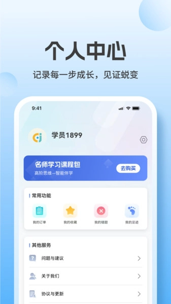 我的功能,提供错题管理以及多种学习模式等。
