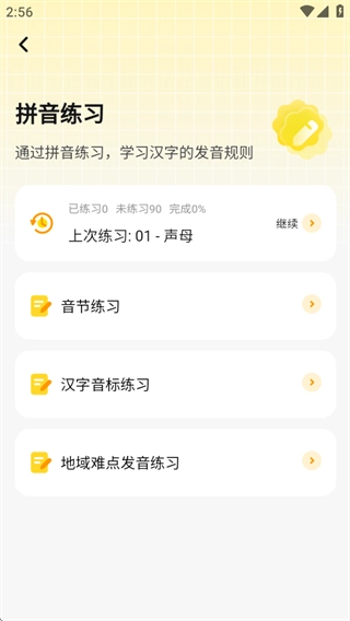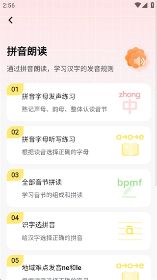 这里提供了多种拼音练习形式,你可以根据自身需求,随时挑选合适的练习模式进行学习。