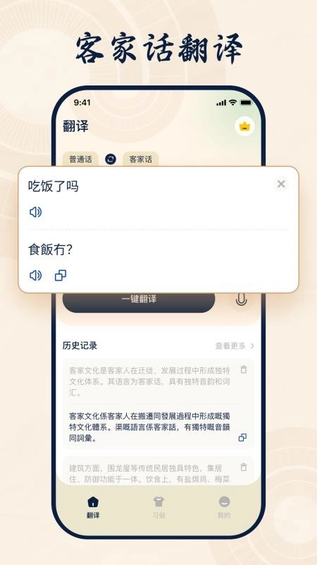 这款工具能帮你轻松处理客家方言的翻译需求,只需输入想要转换的内容,就能快速得到准确的译文,无论是日常沟通还是语言学习都能派上用场。除了翻译功能,它还整合了客家文化相关的知识板块,涵盖历史渊源、传统习俗、特色美食与建筑等内容,让你在使用翻译功能的同时,也能深入了解客家文化的丰富内涵,满足你对这一独特文化的探索兴趣。