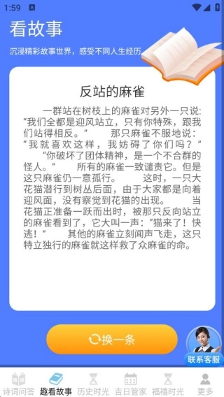 诗词板块储备了丰富的题目资源,故事板块包含了各类有趣的短篇故事,历史板块涵盖了各个阶段的关键历史事件。