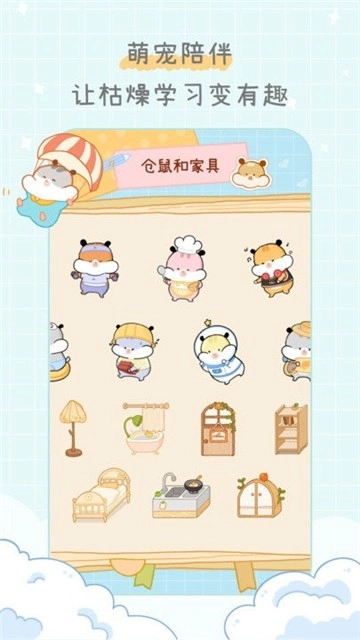 互动投喂:每天完成学习任务能获取奶酪等食物奖励,用来投喂仓鼠神兽,提升互动趣味。