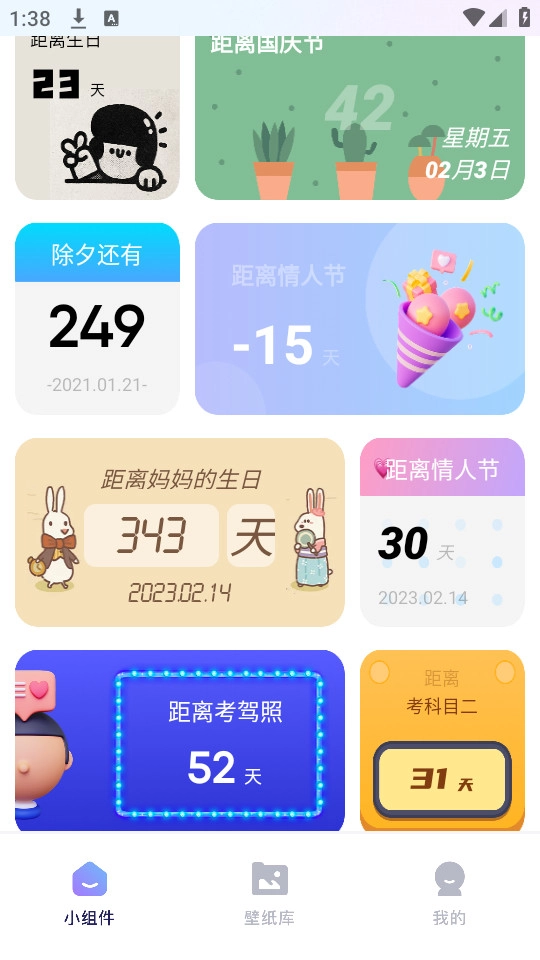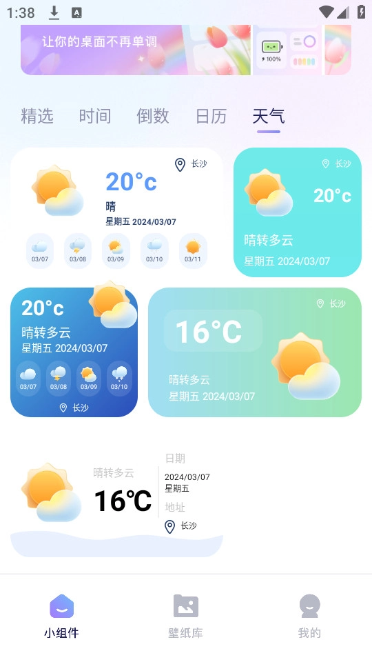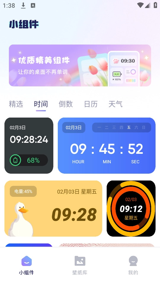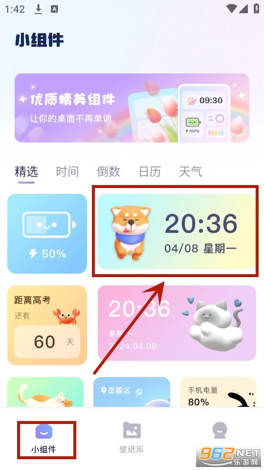 小组件界面里有各类实用的小组件,你可以直接点击自己喜欢的那一款。