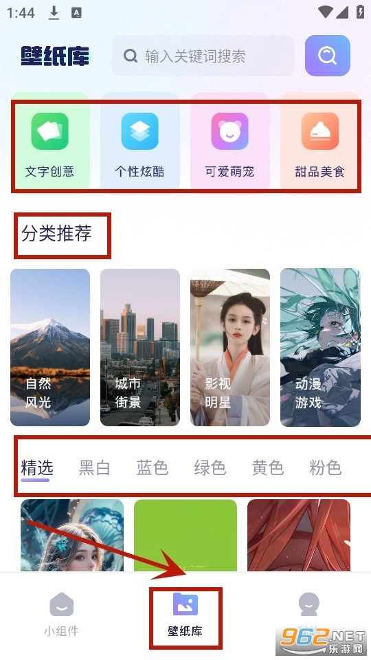 壁纸库界面根据分类直接点击选择你喜欢的壁纸