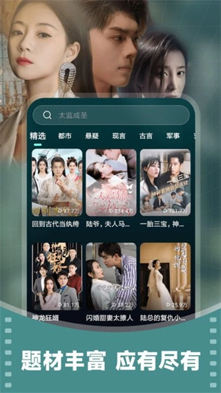 有精选、都市、悬疑等多种分类,方便按喜好快速定位短剧,任意选择更便捷。