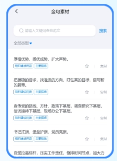 汇聚了14个数据库资源,包括40类范文搜索、18类素材搜索以及28个公文模板,全面覆盖86种不同的写作需求,使写作更加便捷、高效。
