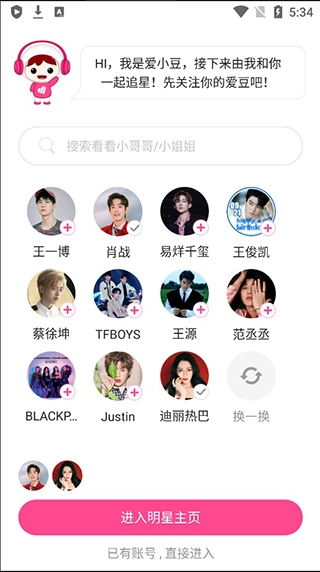 3、点击左上角的标识,支持切换明星动态;