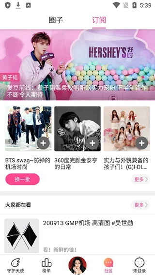 5、切换到社区,支持订阅你喜欢明星以及论坛等