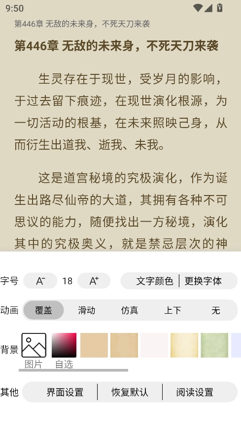 2、针对阅读细节进行了多方面调整,用户能够依据自身习惯更换字体的样式与大小,调节屏幕的亮度,切换不同的翻页模式。