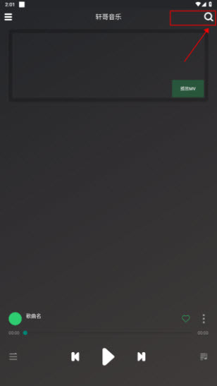 1、安装轩哥音乐并打开应用,接着点击首页右上角形似“放大镜”的搜索图标按钮。