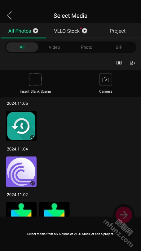 1、首先在魔趣网找到并安装VLLO视频剪辑软件,然后进入该软件。