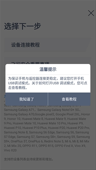 4、成功开启手机的USB调试模式后,再依据教程操作就能连接控制设备。