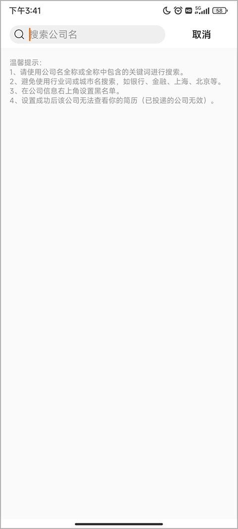 2、在页面上方搜索框中,输入需要屏蔽的公司名称。