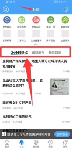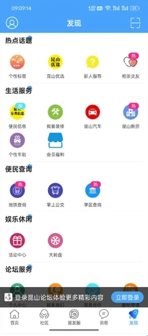 1、进入昆山论坛App后点击右下角的发现。