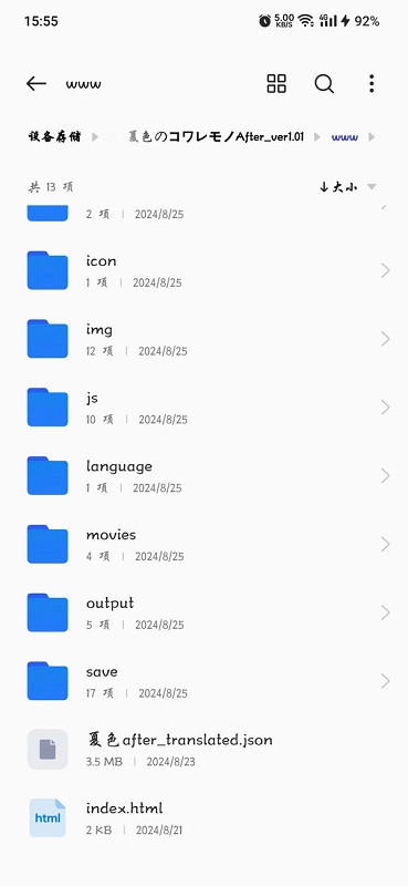 3、添加好游戏后其实就能直接启动了,另外软件里也支持添加翻译补丁,找到对应的翻译文件,把它复制或者移动到游戏文件夹里的WWW文件夹中就可以了。
