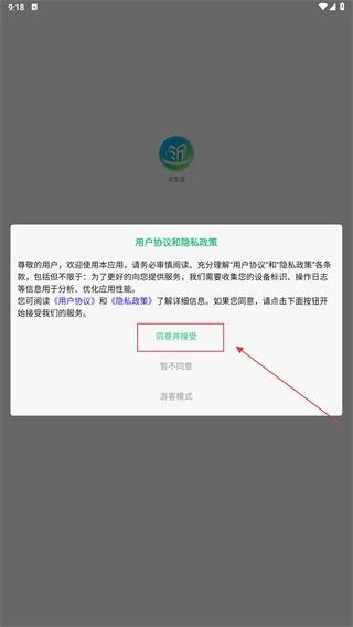 1、点击【同意并接受】按钮,以确认同意用户协议与隐私政策。