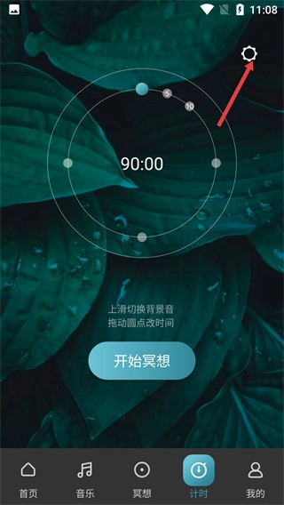 1、在应用首页点击底部【计时】按钮,进入计时功能页面,可进行冥想计时相关的配置操作。