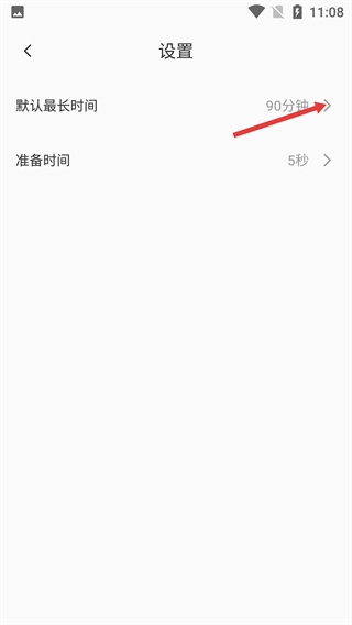 3、在计时设置页面点击【默认最长时间】选项,弹出时长选择列表,可调整计时的最长时长。