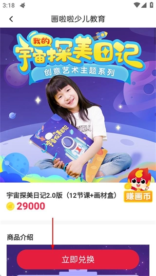 3、在商品详情页面,点击立即兑换按钮,即可用画币兑换该礼品。