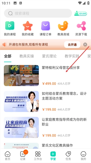 1、点击底部【学堂】选项,即可进入课程浏览页面。