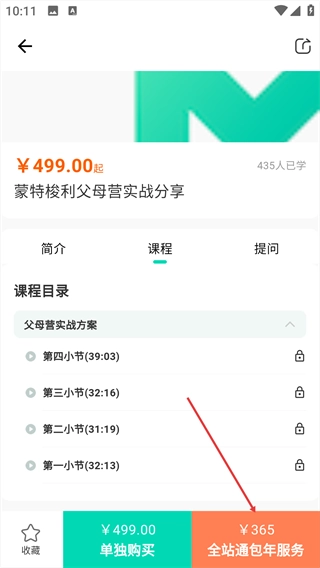 3、在课程详情页,可选择【单独购买】或【全站通包年服务】等购买方式。