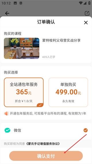 4、进入订单确认页,确认购买方式与支付方式后,点击【确认支付】按钮,即可完成课程购买流程。