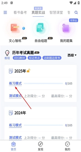 4、查阅目标章节对应的教材页码、考纲要求等相关信息,定位到历年真题板块,查看该板块内的题目数量等具体内容。