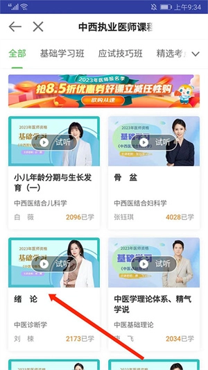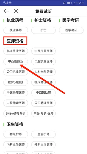 挑选合适的视频类别,比如在“医师资格”分类下选择“中西医结合执业”这一具体选项