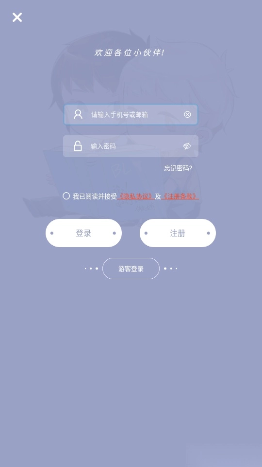 打开软件后阅读“隐私协议及注册条款”,点击“同意并继续”按钮即可进入。