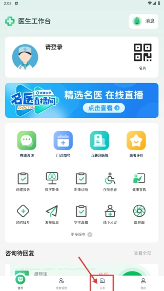 打开医疗资讯类应用,点击底部的头条选项,即可进入头条页面。