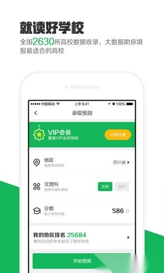 熊猫高考汇聚了全国2964所高校的历年录取分数、学校概况、专业排名及学生就业等海量信息,借助大数据技术与核心算法,可对大学录取分数进行预测并计算录取概率。同时,平台有数百位专家以及学长学姐在线,能够实时为考生提供志愿填报方面的指导与服务。