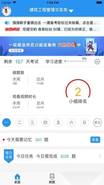 桌面能为你提供智能且科学的统计分析,还会依托我们的云智能计算,自动帮你制定学习计划,你只需依照软件里的计划按时完成任务就可以了。