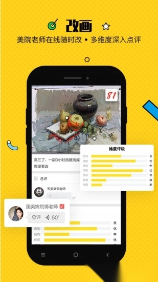 这是一款专为美术艺考生打造的线上交流学习平台,在这里,你可以享受到在线评画、名师课程、画室服务等丰富功能。无论你在学习中遇到哪个知识点的困惑,都能通过这款软件找到答案。